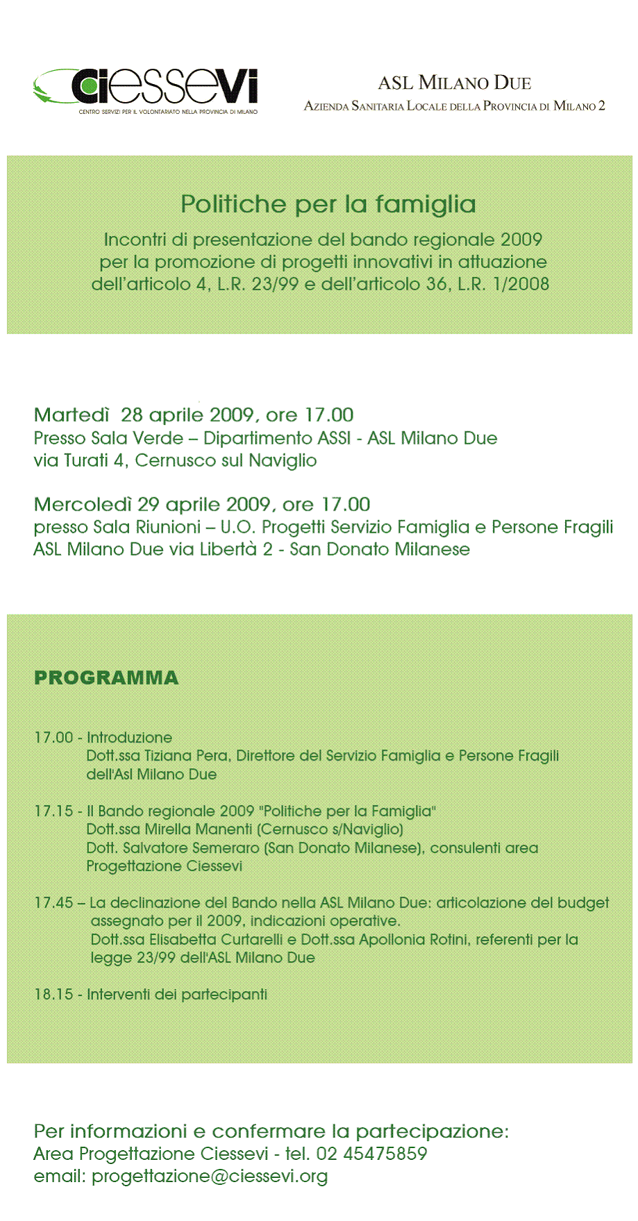 Invito Incontri Presentazione Bando 2009 - Azienda Sociale Sud Est Milano