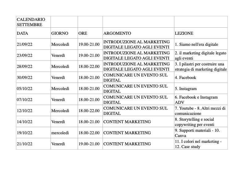 Clicca qui per visualizzare il calendario e gli argomenti del corso
